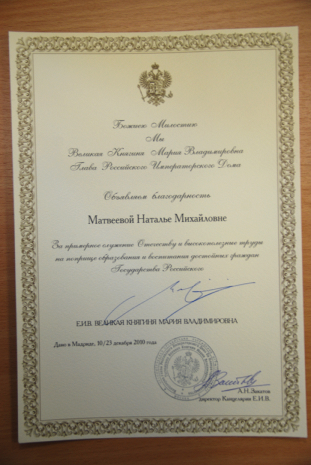 Ludmila Emelina Опубликовано 21 марта, 2011 Опубликовано 21 марта, 2011 Поздравляем нашего уважаемого Партнера Матвееву Наталью Михайловну - главного редактора журнала "Юрист вуза" с заслуженной наградой!Желаем всего самого доброго, счастья, удачи во всех начинаниях! Журнал «Юрист вуза» награжден Великой Княгиней Главный редактор журнала «Юрист вуза», кандидат педагогических наук Наталья Матвеева была удостоена престижной награды. В рамках III Всероссийских Шамовских педагогических чтений Научной школы Управления образованием, которые прошли 25 декабря 2011 г. в Москве, ей была вручена благодарность Главы Российского Императорского Дома – Е.И.В. Великой Княгини Марии Владимировны «за примерное служение Отечеству и высокополезные труды на поприще образования и воспитания достойных граждан Государства Российского».Также, по сложившейся традиции, личные поздравления от нашего художника Тищенко Анны, на этот раз в виде красивого букета роз (фрагмент одной из картин с ее персонального сайта ). С уважением, Администрация!